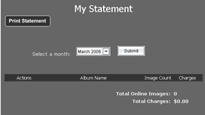 The next screen will allow you to view your statement for the current month. If you wish to view a different month simply select a different month from the drop down menu. |
